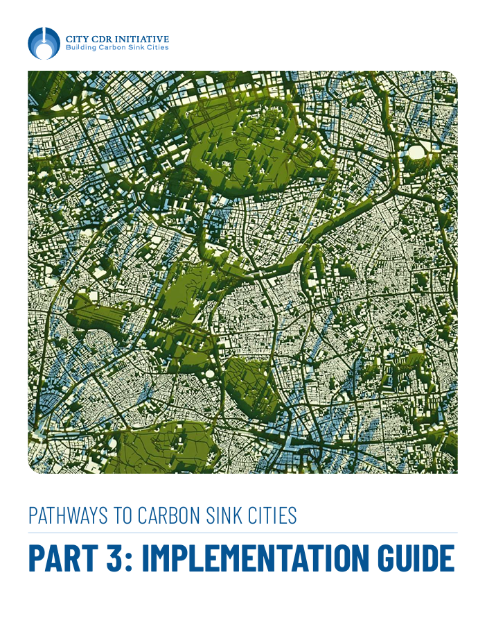 Pathways to Carbon Sink Cities: Implementation Guide (Part 3), is the third and final report in a three-part series under the City CDR Initiative’s urban CDR opportunity baselining assessment. This Guide gives local officials the practical tools to act: frameworks, processes and methods that cities can use immediately, even at early stages of readiness. Together, the Carbon Sink Cities series offer a clear narrative and actionable roadmap to local governments wanting to increase the ambition of their climate action efforts. By applying and iterating on these tools – and by learning collectively – cities can bring about a future in which CDR supports local development goals, fosters regenerative models, strengthens resilience and contributes meaningfully to global climate stability.